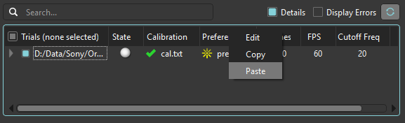 6. Right-click on the Preferences column for one of the currently selected trials, and select Paste.
