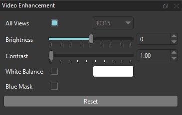 The Video Enhancement tool allows you to improve video quality before processing data, which can be especially useful for calibration under challenging lighting conditions. Changes made using this tool are previewed for the loaded 2D views, and any enhancements are applied before running the 2D inference, lens calibration, or chessboard calibration processes. Therefore, what you see in the 2D views is how the video data will be processed.